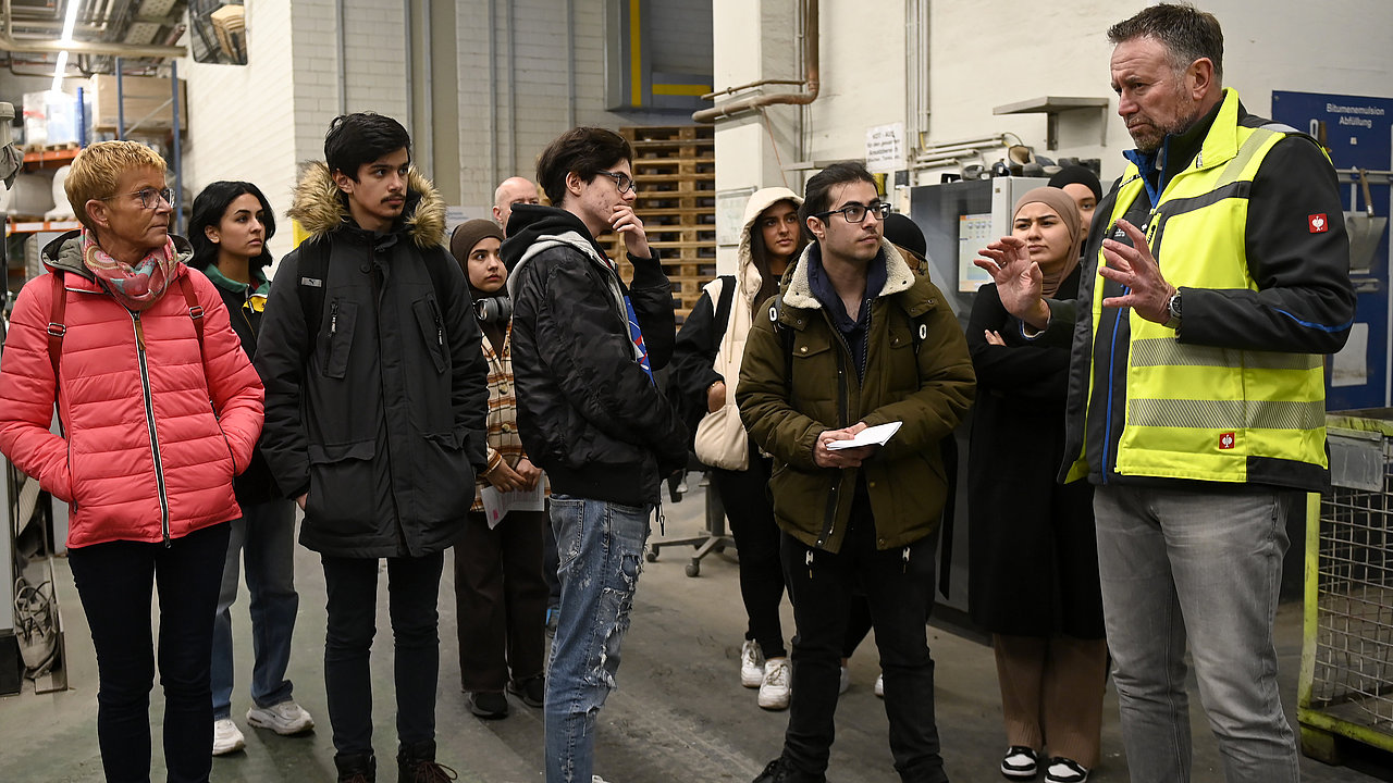 Knapp 40 Schüler:innen haben am Dialog mit der Jugend mit der MC-Bauchemie in Bottrop teilgenommen. Der Nachmittagstermin begann mit einer anschaulichen Führung durch die Produktion und das Lager. Anschließend stellte sich Nicolaus M. Müller, Geschäftsführender Gesellschafter der MC-Bauchemie, den Fragen der Schüler:innen der Theodor-König-Gesamtschule Duisburg und des Don-Bosco-Gymnasiums Essen. Neben den Antworten zu Fragen über Nachhaltigkeit, Ausbildung, Folgen der Pandemie und den Vor- und Nachteilen des Standorts Deutschland, erhielten die Jugendlichen spannende Einblicke in die Herausforderungen eines weltweit agierenden Familienunternehmens.
