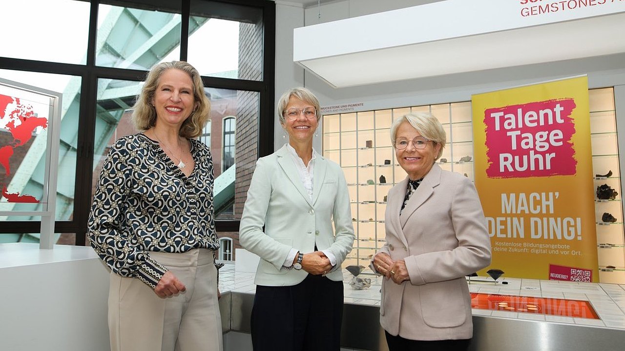 „Um junge Menschen zu erreichen, müssen wir sie in ihrer Lebenswirklichkeit abholen“, betont Dorothee Feller, Schul- und Bildungsministerin des Landes Nordrhein-Westfalen. Zur Einstimmung auf 11 geballte Tage Talentförderung im Ruhrgebiet verschaffte sie sich im Deutschen Bergbau-Museum Bochum einen Überblick und zeigte sich begeistert von der Programmvielfalt: „Die TalentTage Ruhr haben als außerschulischer Lernort die wunderbare Möglichkeit, konkrete Einblicke in Berufe und Tätigkeiten zu geben, Bildungsangebote kreativ und interaktiv zu gestalten und auf die Interessen und Bedürfnisse der jungen Zielgruppe einzugehen. So können die Weichen für die individuell richtige Ausbildungs-, Studien- und Berufswahl gestellt werden.“