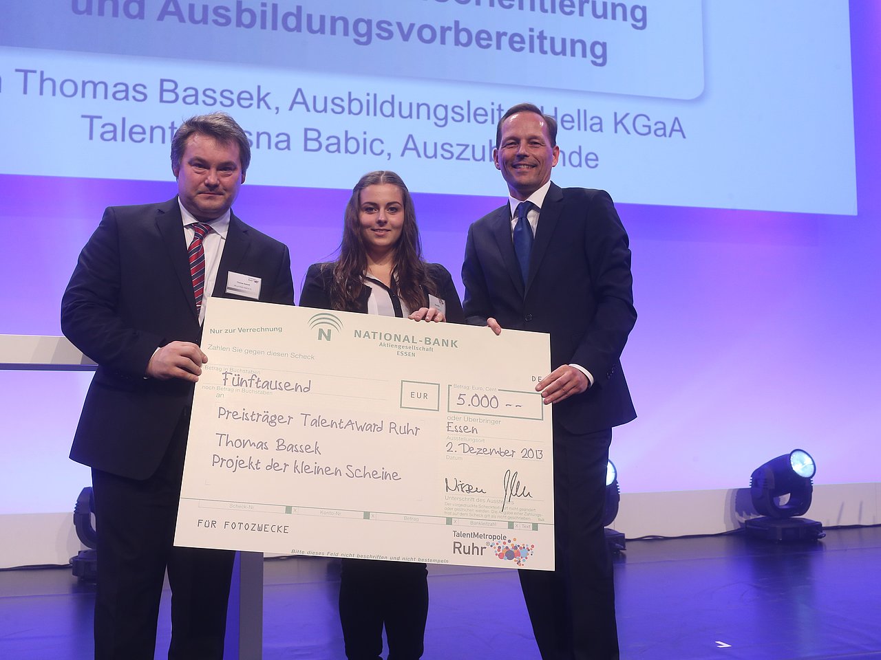 Thomas Bassek, 47, entwickelte 2004 das „Projekt der kleinen Scheine“. Damit ermöglicht der Berufsausbilder der HELLA KGaA & Hueck Co. Schüler:innen achter Klassen aus Recklinghausen einen nachhaltigen Eindruck in die technische Ausbildung und fördert soziale sowie fachliche Fähigkeiten. Haupt- und Realschüler:innen sowie Gymnasiast:innen melden sich freiwillig und arbeiten an zwölf Nachmittagen an ihren „kleinen Scheinen“. Ein „kleiner Schein“ ist eine Schulungseinheit, die jeweils einen Teil der elementaren Grundfertigkeiten der von der HELLA ausgebildeten Berufe umfasst. Die Konzeption und Umsetzung der einzelnen „kleinen Scheine“ vertraut Thomas Bassek eigenen Auszubildenden an. Die Auszubildenden, die das Projekt als TeilprojektleiterIn begleiten, erlernen so wichtige Kenntnisse, die sie in Zukunft als potenzielle Führungskraft nutzen können. Für Thomas Bassek sind neben der fachlichen Schulung, Geduld, die richtige Ansprache und ein passendes Maß an Fürsorge entscheidend zur Förderung junger Menschen.