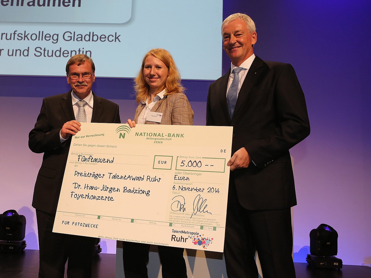Wer sich mit klassischer Musik beschäftigt, lernt ganz nebenbei eine Menge über sich selbst. Das ist die Überzeugung von Hans-Jürgen Badziong, Lehrer am Berufskolleg Gladbeck und selbst ein großer Fan klassischer Musik. „Deshalb lag es nahe, dieses vermeintlich verstaubte Kulturgut zu nutzen, um Schüler:innen zu helfen, ihre Talente zu entdecken“, sagt Badziong. Abseits des Klassenraums und außerhalb der Schulzeit sollte das passieren. Seine Idee: Klassische Musik für junge Menschen in einem neuen Kontext erfahr- und erlebbar zu machen – als Organisator:innen eines Konzerts der Extraklasse im Foyer der eigenen Schule. Die Foyerkonzerte haben 2014 zum dritten Mal stattgefunden und mittlerweile hat es sich unter den Schüler:innen auch herumgesprochen, wie viel Spaß, Genugtuung und Anerkennung es bringt, sich bei der Konzertorganisation zu engagieren. Ganz nebenbei hat manche/-r ProjektteilnehmerIn erkannt, was sie/er kann und was ihr/ihm weniger liegt.