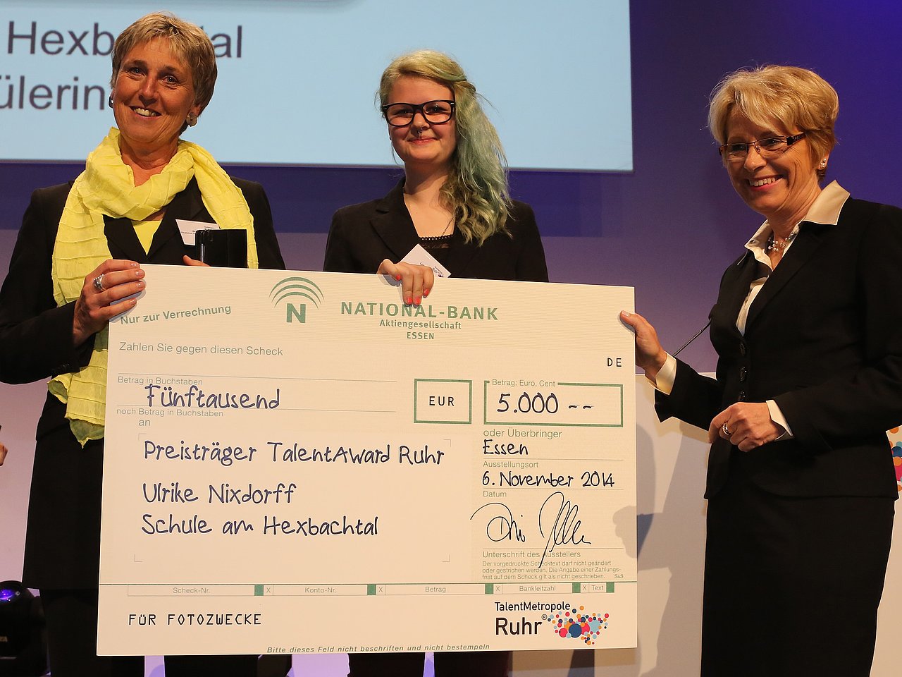 Kein Talent ungesehen zu lassen, dieser Anspruch steckt hinter der Unterstützung von Ulrike Nixdorff, Leiterin einer Mülheimer Hauptschule. Sie möchte vor allem die Stärken ihrer Schüler:innen fördern und hat dafür ein Konzept entwickelt. Ab der 5. Klasse finden in regelmäßigen Abständen Gespräche zwischen Schüler:innen und Lehrkräften oder Sozialarbeiter:innen statt, bei denen die Jugendlichen nach und nach herausfinden, worin sie besonders gut sind und was sie interessiert. Sie lernen auch, persönliche Ziele zu formulieren und selbstbewusst aufzutreten: Dem gängigen Vorurteil gegenüber Hauptschüler:innen wird bewusst entgegengetreten „Wir sind wer und wir können etwas!“.